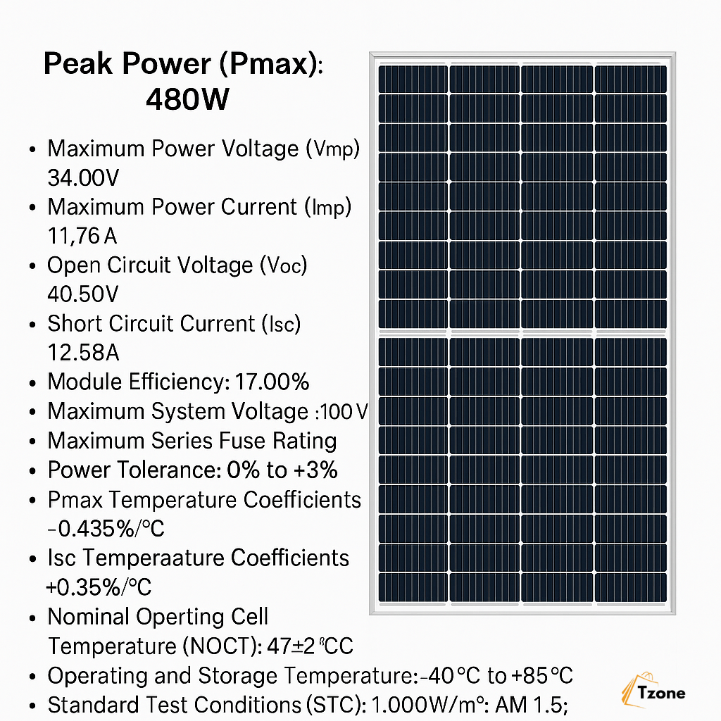 This 480W Monocrystalline Solar Panel is designed to deliver high energy output with enhanced efficiency, making it suitable for various applications, including residential, commercial, and off-grid systems.