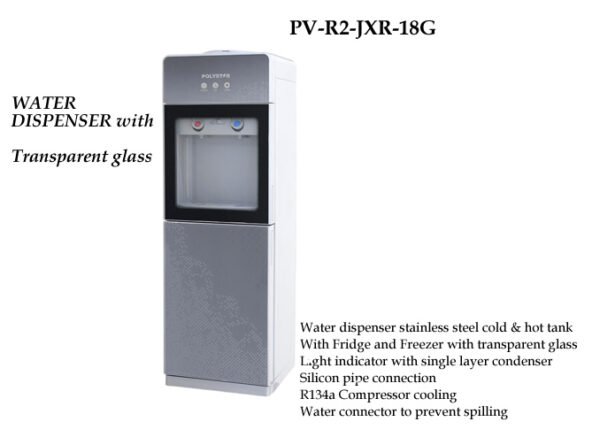 Polystar Water Dispenser Hot and Cold – PV-R2JXR-18G | 304 Stainless Steel Tanks, Grey Tempered Glass, Danfu 4.0 Compressor