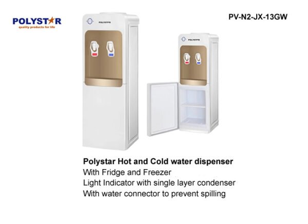 Polystar Water Dispenser Hot and Cold – White & Gold | 304 Stainless Steel Tanks, Cool Cabinet, Danfu 4.0 Compressor